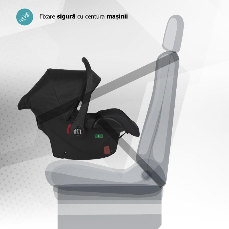 Copertina cu protecție UV, inserțiile moi pentru nou-născuți și forma ergonomică asigură o călătorie sigură și confortabilă în orice deplasare.
