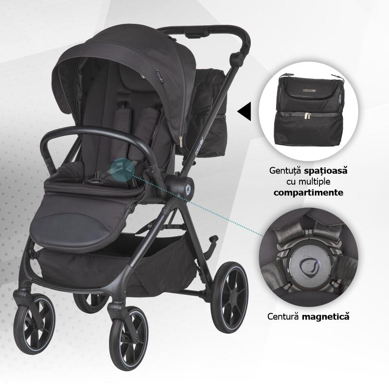 Carucior modular 4in1 Coccolle Serry Jet black cu Scoica auto iSize Coccolle Knox Black si Baza isofix iSize Coccolle Knox