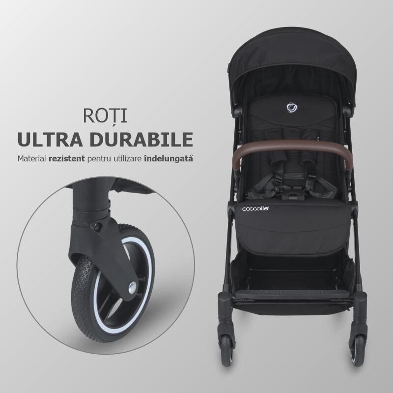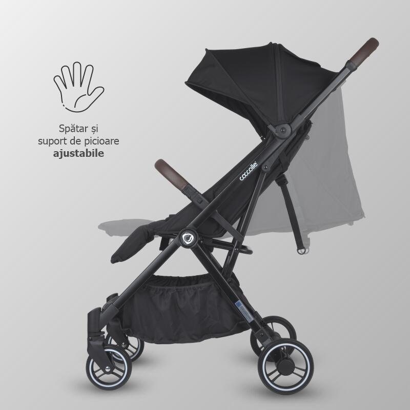 Carucior sport Autofold Coccolle Melia, Cadru aluminiu anodizat, Copertina XXL cu protectie UV 50+, Garda la sol mare, pozitie verticala dupa pliere, certificat pana la 22 kg, Diamond Black