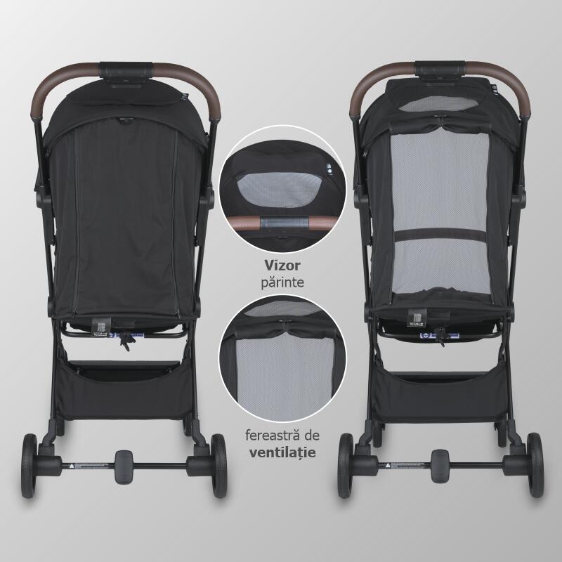 Copertina XXL oferă protecție extinsă, iar fereastra de ventilație ajută la o circulație mai bună a aerului în zilele călduroase. Iar când oboseala își spune cuvântul, Melia se adaptează – poziții comode pentru relaxare și somn, astfel încât plimbarea să rămână plăcută pentru cel mic.