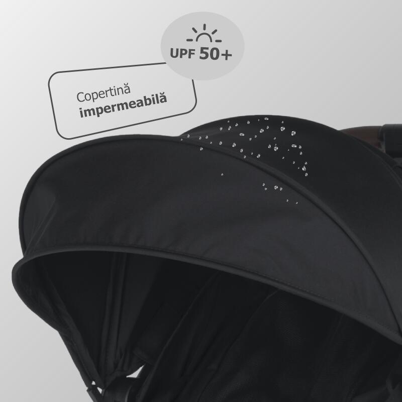 • cu copertina XXL UV50, cu fereastra de ventilatie.