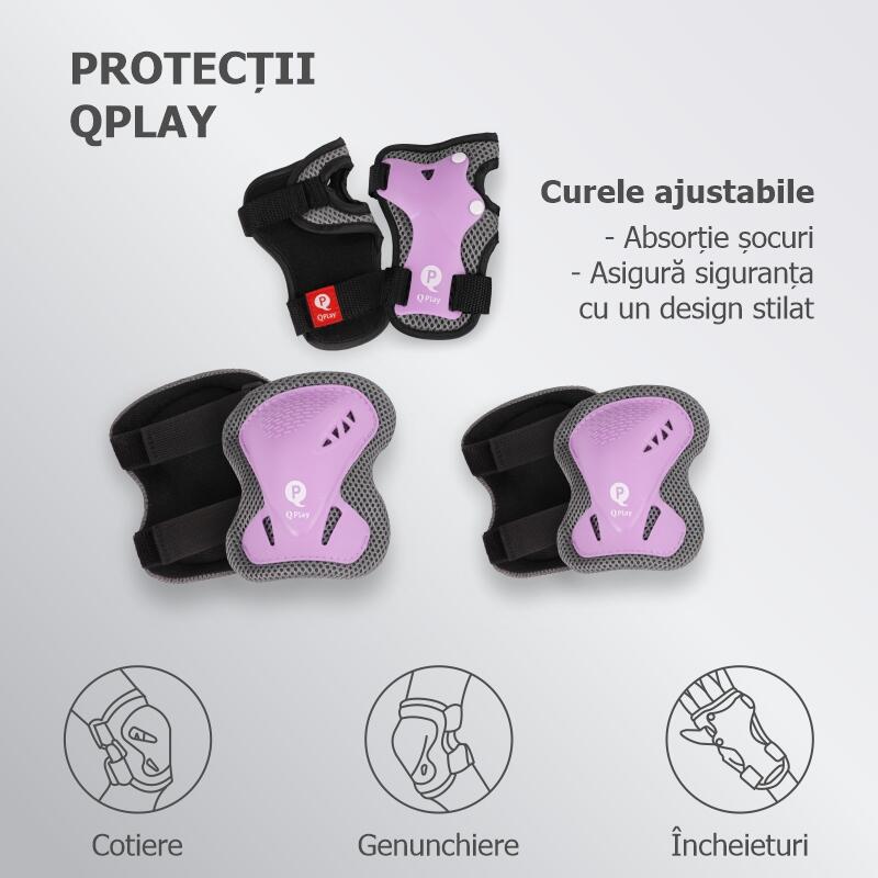 QPlay Safety Pads sunt protecțiile pe care copilul le acceptă mai ușor la purtare, pentru că sunt ușoare, se fixează rapid și stau bine pe corp. Setul include protecții pentru coate, genunchi și încheieturi (6 piese), fiind ideal pentru plimbări cu trotineta, bicicleta, rolele, skateboard-ul sau alte activități outdoor.