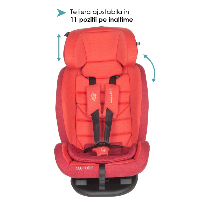 Avand in vedere faptul ca produsul este destinat unei folosiri indelungate, acesta ofera 11 pozitii facile de ajustare a tetierei, nefiind necesara indepartarea centurii pentru ajustarile la grupele 2 si 3.