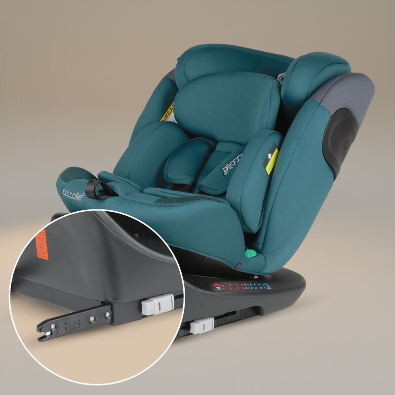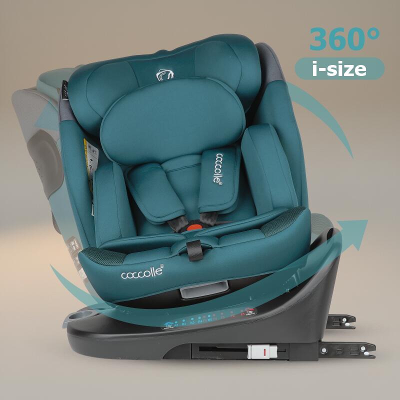Scaun auto iSize rotativ cu Isofix Coccolle Atira R129, 40-150 cm, 0-36 kg, Top Tether, Centuri in 5 puncte, Pozitie de somn, Tetiera reglabila, Carcasa ranforsata, Spuma de memorie, Hydra Blue