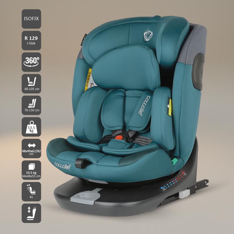 Scaunul auto rotativ iSize 40-150 cm Coccolle Atira este unul dintre cele mai inovative modele de scaun auto, acesta poate fi utilizat rear facing pana la inaltimea de 105 cm ~ 4 ani. Recomandam utilizarea acestei pozitii intrucat protectia la impact este de 5 ori mai mare decat in cazul instalarii forward facing. Beneficiind de o serie de caracteristici deosebite, scaunul auto Atira se deosebeste printr-o carcasa ranforsata cu metal pentru un mai mare grad de siguranta. Alaturi de aceasta ranforsare, scaunul auto beneficiaza de o matlasare premium cu spuma de memorie in 3 straturi in toate partile vulnerabile (insert pentru nou nascuti, tetiera si laterale). Acest sistem integrat garanteaza o mai buna protectie la impact pentru capul, gatul si trunchiul copilului.