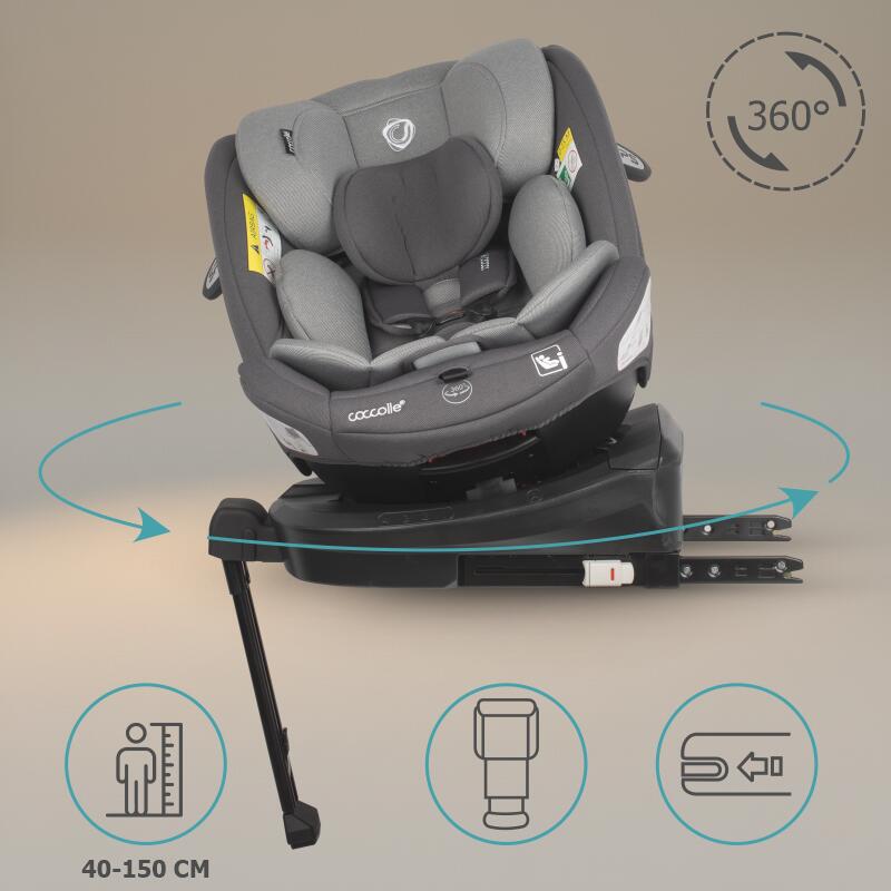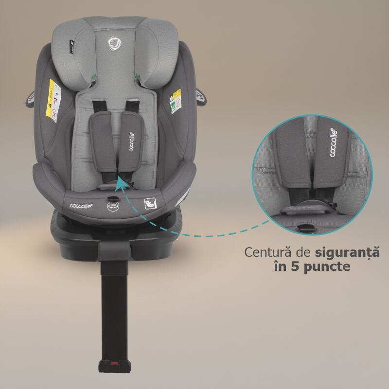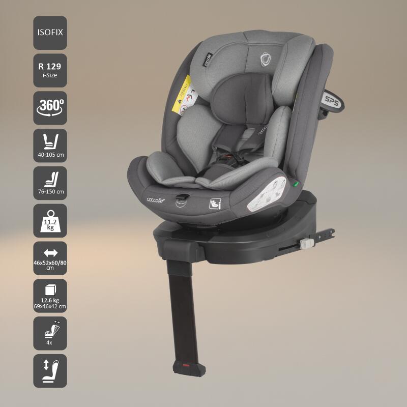 Certificat prin cel mai recent standard de siguranta R129, scaunul auto Coccolle Sidra este complet adaptabil inca de la stadiul de bebelus. Echipat cu un insert pentru nou nascuti ergonomic, materiale prietenoase si multiple niveluri de ajustare, acest scaun auto va face parte din familie mult timp. Ranforsarile interioare puternice sporesc siguranta conferita de scaun, in special rezistenta la impactul frontal si lateral.