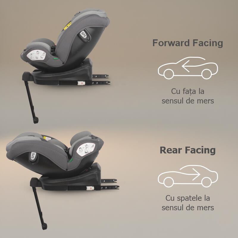 - Utilizabil in extended rear facing: pozitionare cu spatele la sensul de mers pana la 105 cm