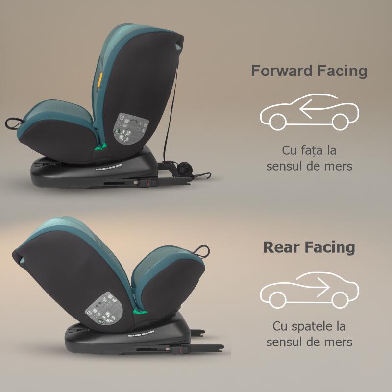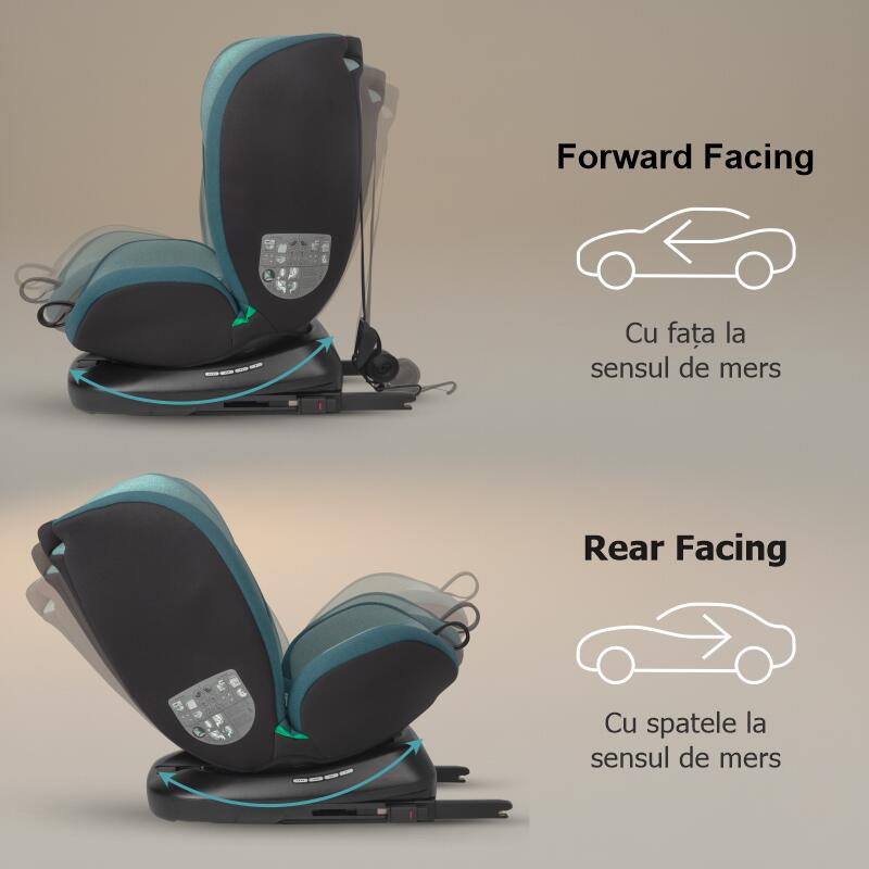 - Ajustabilitate maxima si confort: 1 pozitie rear-facing, 4 pozitii forward-facing, 7 pozitii la tetiera, centura de siguranta ajustabila