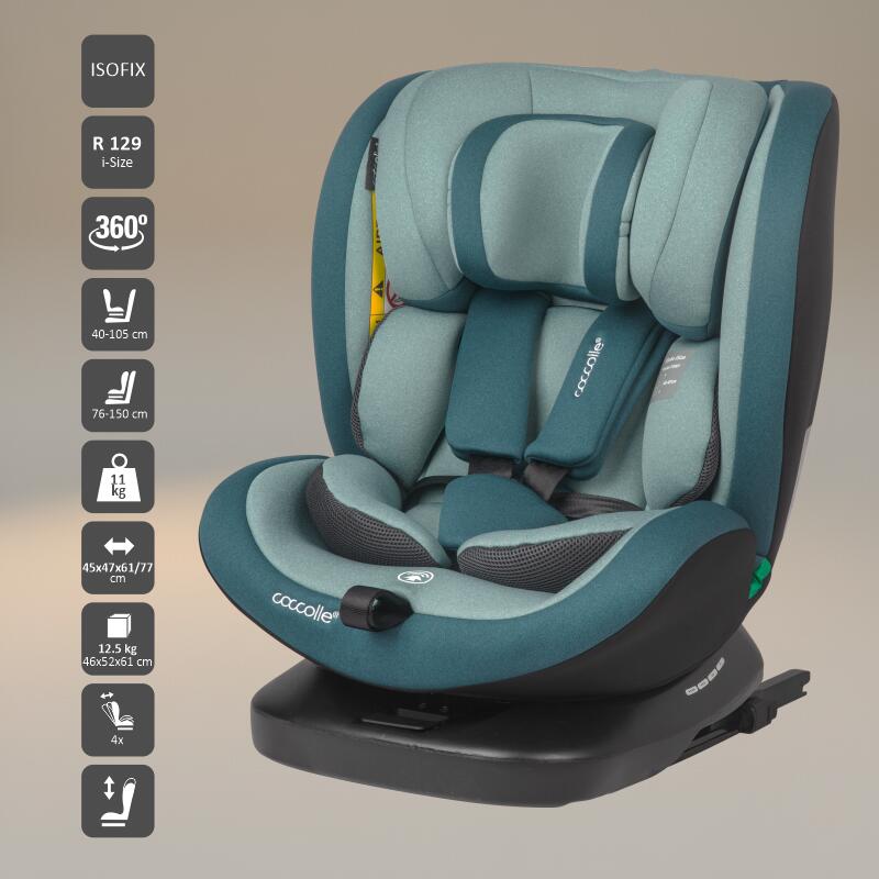 Remarcabil prin materialele textile de inalta calitate, Coccolle Mydo iSize va oferi in mod sigur un inalt nivel de confort lipsit de supraincalzire si va garanta ergonomie datorita pernei reductoare si a tetierei de nou-nascut atent concepute. Tetiera este realizata dintr-o spuma de memorie densa care va proteja cu siguranta capul si gatul copilului pe parcusul intregii durate de utilizare. Deoarece siguranta este cel mai important factor in alegerea scaunului auto, recomandam utilizarea acestuia in pozitie RWF (cu spatele la sensul de mers) pana la 105 cm; cu toate ca scaunul poate fi utilizat cu fata la sensul de mers de mai devreme, va sfatuim mereu sa optati pentru durata maxima de utilizare cu spatele la sensul de mers – extended rear-facing.