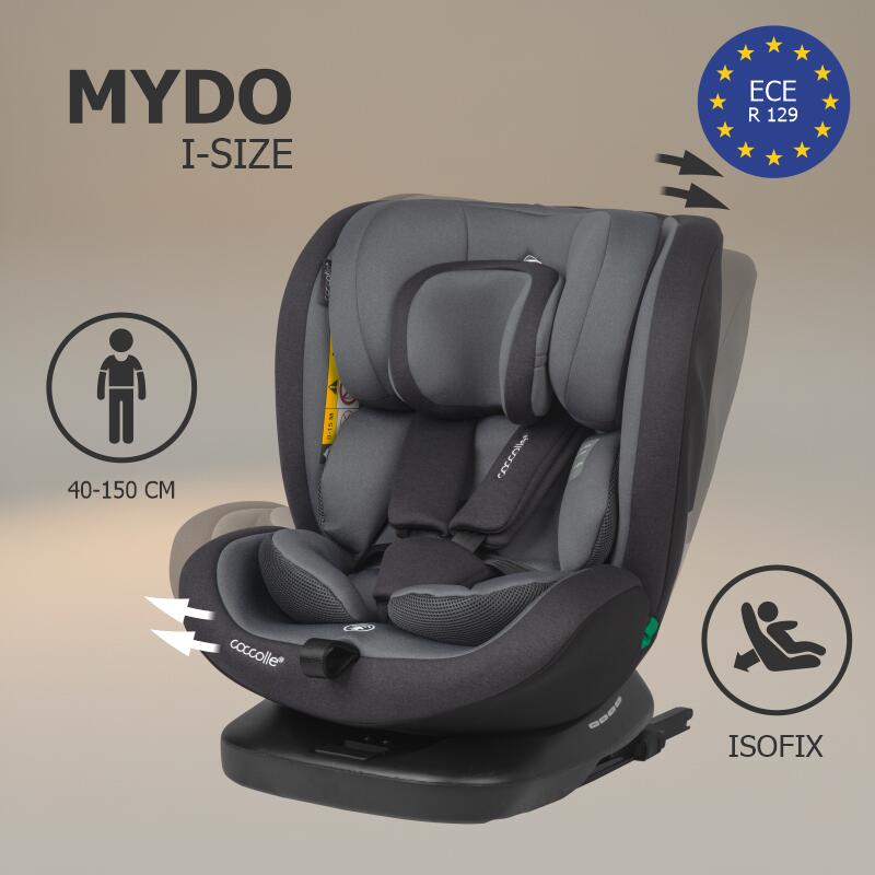 Regandit pentru a trece prin rigorile de siguranta ale standardului R129, scaunul auto Mydo iSize este un produs complex si multifunctional, cu 4 pozitii de inclinare, posibilitate de utilizare cu spatele la sensul de mers pana la 105 cm, 7 pozitii de ajustare a tetierei, multiple pozitii de ajustare a centurilor de siguranta si posibilitatea de a le indeparta dupa ce copilul a trecut de greutatea de 15 kg.
