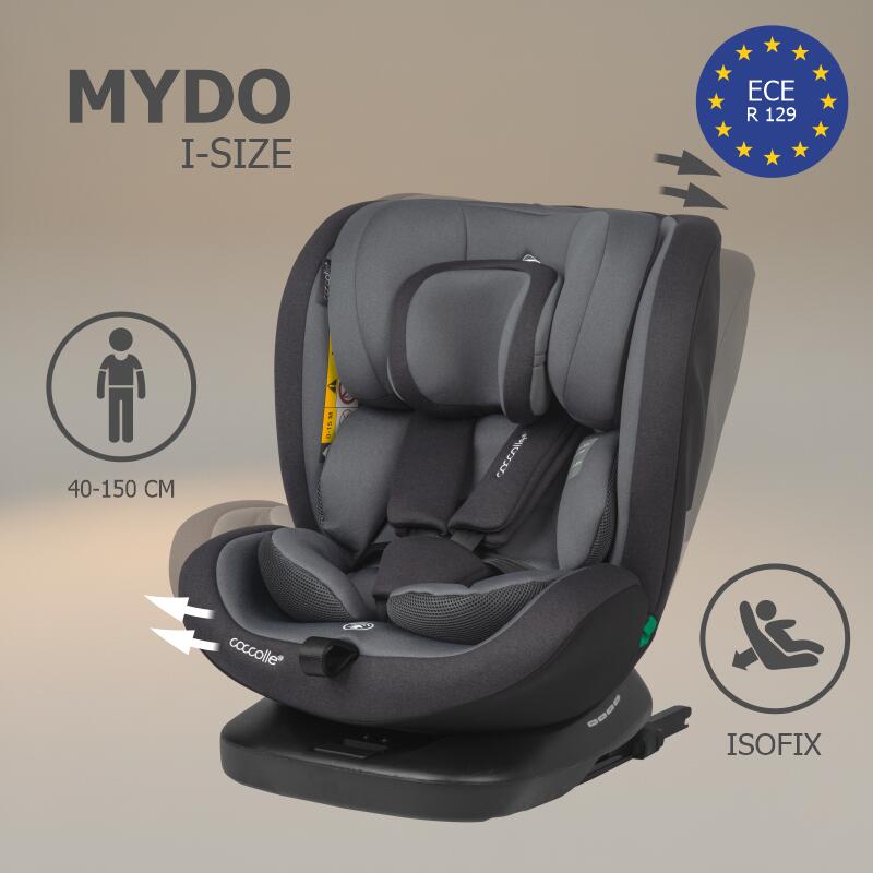 Regandit pentru a trece prin rigorile de siguranta ale standardului R129, scaunul auto Mydo iSize este un produs complex si multifunctional, cu 4 pozitii de inclinare, posibilitate de utilizare cu spatele la sensul de mers pana la 105 cm, 7 pozitii de ajustare a tetierei, multiple pozitii de ajustare a centurilor de siguranta si posibilitatea de a le indeparta dupa ce copilul a trecut de greutatea de 15 kg.