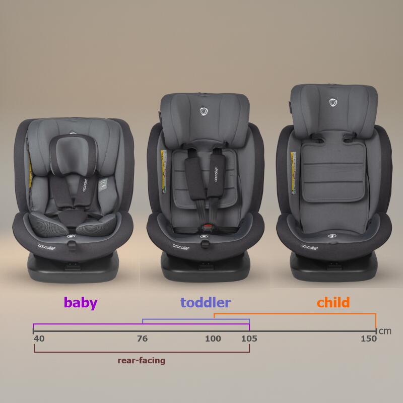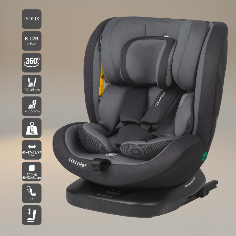 Da, Scaun auto Premium, rotativ iSize 40-150 cm Coccolle Mydo, corespunde vechiului standard 0-36 kg.