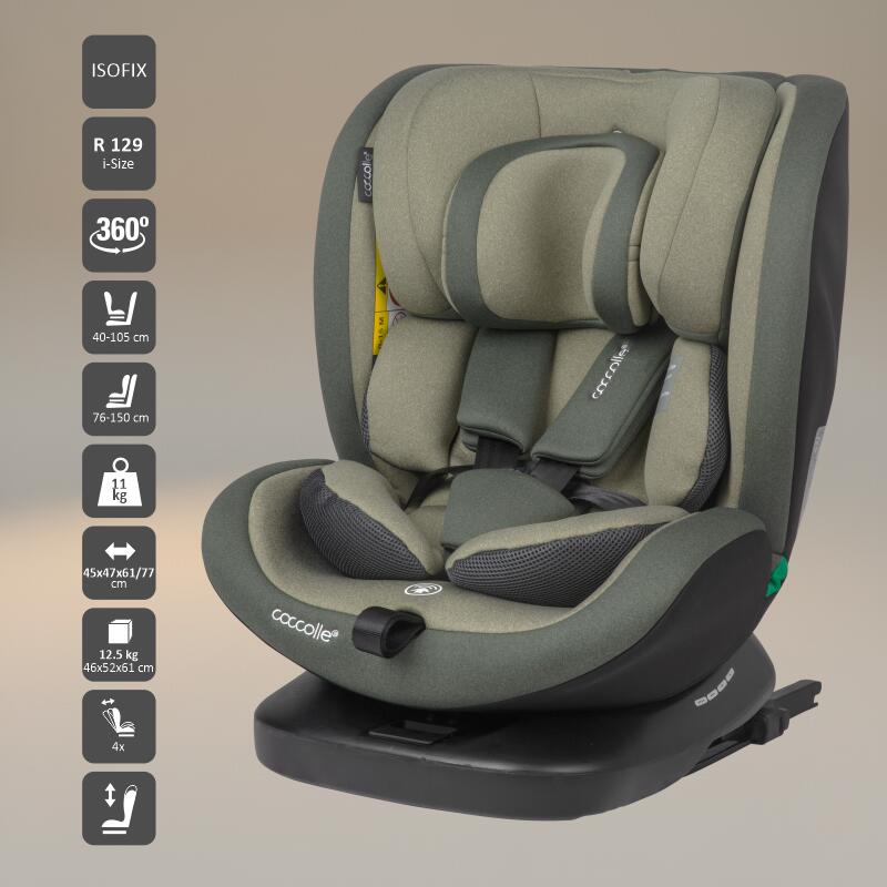 Remarcabil prin materialele textile de inalta calitate, Coccolle Mydo iSize va oferi in mod sigur un inalt nivel de confort lipsit de supraincalzire si va garanta ergonomie datorita pernei reductoare si a tetierei de nou-nascut atent concepute. Tetiera este realizata dintr-o spuma de memorie densa care va proteja cu siguranta capul si gatul copilului pe parcusul intregii durate de utilizare. Deoarece siguranta este cel mai important factor in alegerea scaunului auto, recomandam utilizarea acestuia in pozitie RWF (cu spatele la sensul de mers) pana la 105 cm; cu toate ca scaunul poate fi utilizat cu fata la sensul de mers de mai devreme, va sfatuim mereu sa optati pentru durata maxima de utilizare cu spatele la sensul de mers – extended rear-facing.