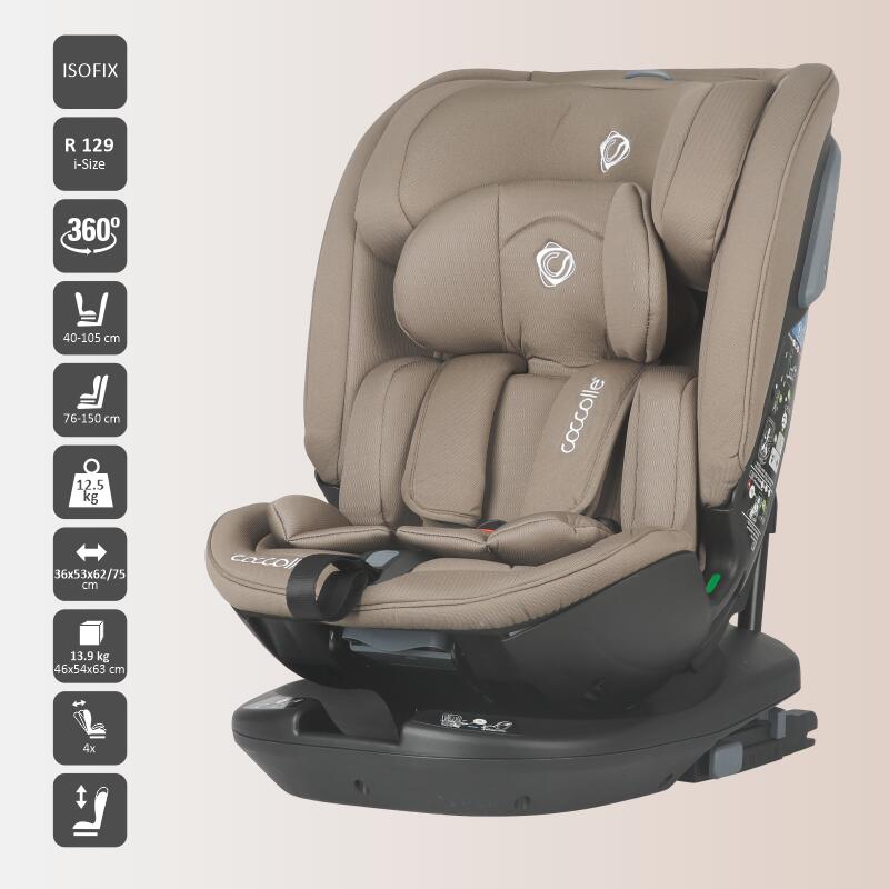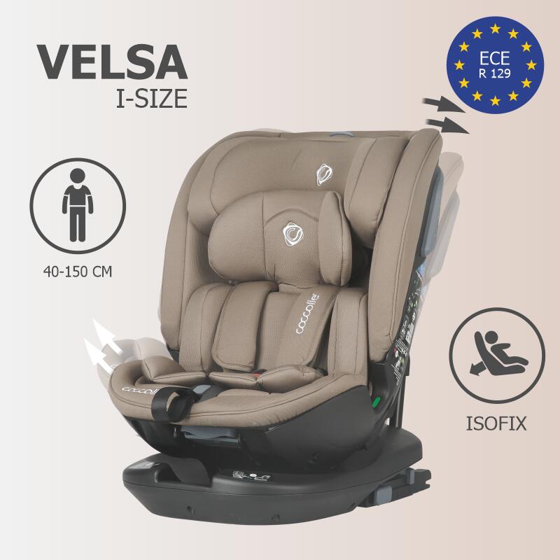 Noul scaun auto iSize Coccolle Velsa garanteaza confortul celui mic inca de la primele luni si poate fi utilizat o lunga perioada de timp. Pentru parinti, este usor de utilizat gratie sistemului de rotatie care faciliteaza amplasarea copilului in produs si pozitionarea acestuia in modul corespunzator in autovehicul.