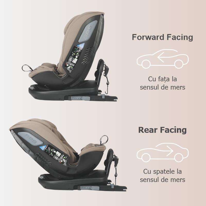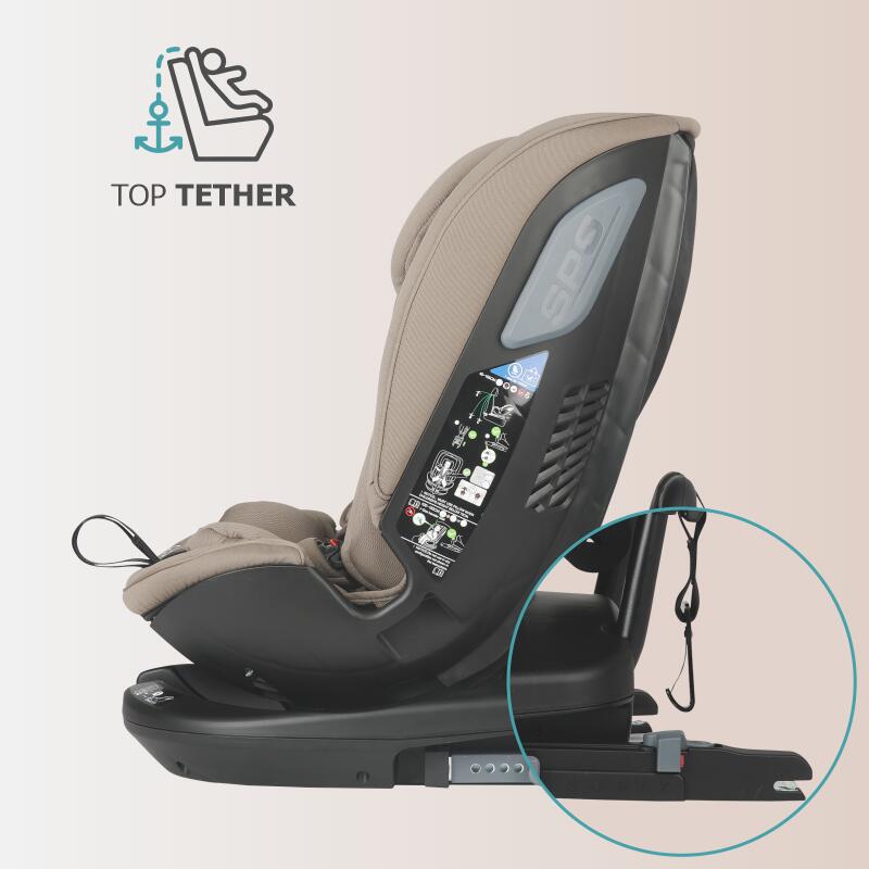 - isofix si top tether: conectare directa cu automobilul pentru siguranta fara compromisuri