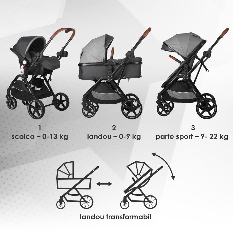 Carucior transformabil 3in1 Coccolle Siyana Urban Grey