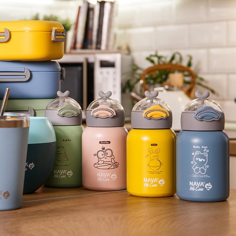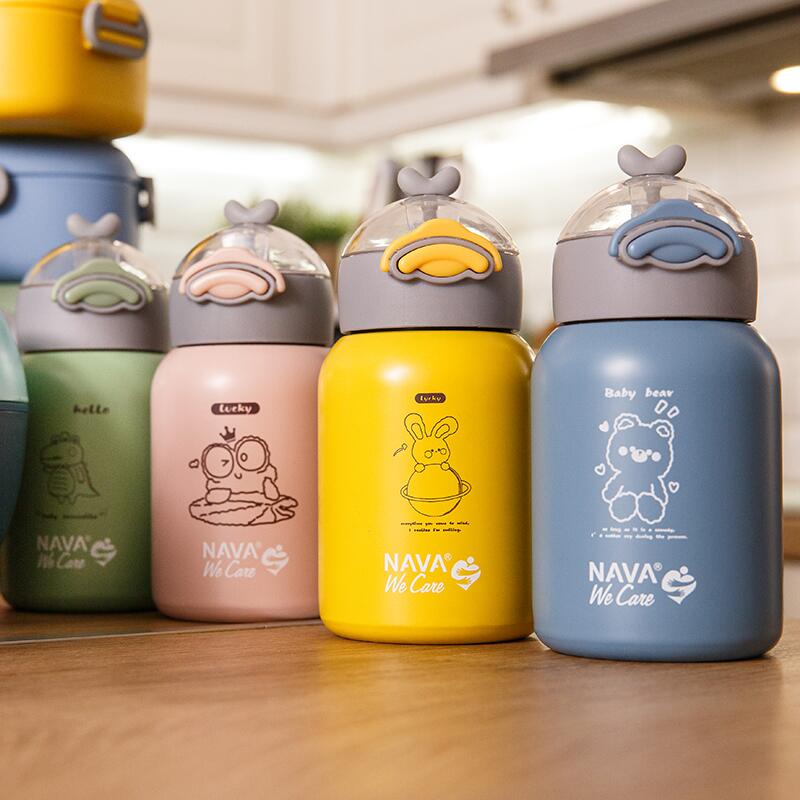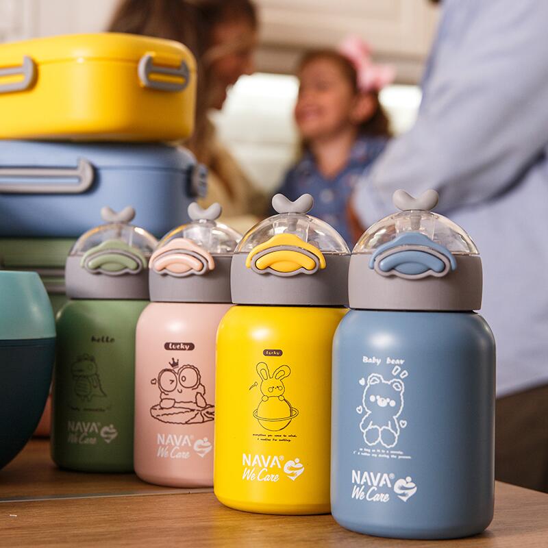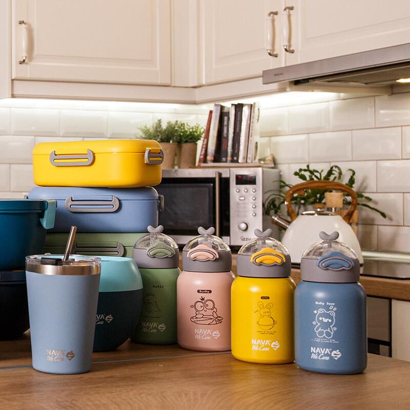 Sticla pentru lichide fierbinti Nava de 350 ml „We Care” va încânta atât tinerii cât și bătrânii. Este un produs inovator care îmbină funcționalitatea cu stilul. Este realizat din otel inoxidabil 18/8 (ss304) si cu pereti dubli. Este fara BPA, fara PVC, fara ftalati si alte substante nocive, pentru durabilitate si depozitare absolut sigura si sanatoasa a bauturilor pentru bebelusi si copii mici. În acest termos cu tehnologie de izolare în vid, vei păstra băuturile fie calde, fie reci la temperatura dorită timp de 8-10 ore. Este potrivit și pentru congelare. Cu un inel de siguranță din silicon încorporat pe capac pentru a preveni scurgerile și un pai încorporat pentru ușurință în utilizare. Capacul se deschide automat (OneTouch) prin apasarea butonului, special conceput pentru mainile mici. Este ideal pentru prietenii noștri mici, pentru școală, plimbări și, de asemenea, pentru interiorul casei, deoarece nu se rupe și este complet impermeabil. În ceea ce privește curățarea, pur și simplu spălați manual cu un burete moale.