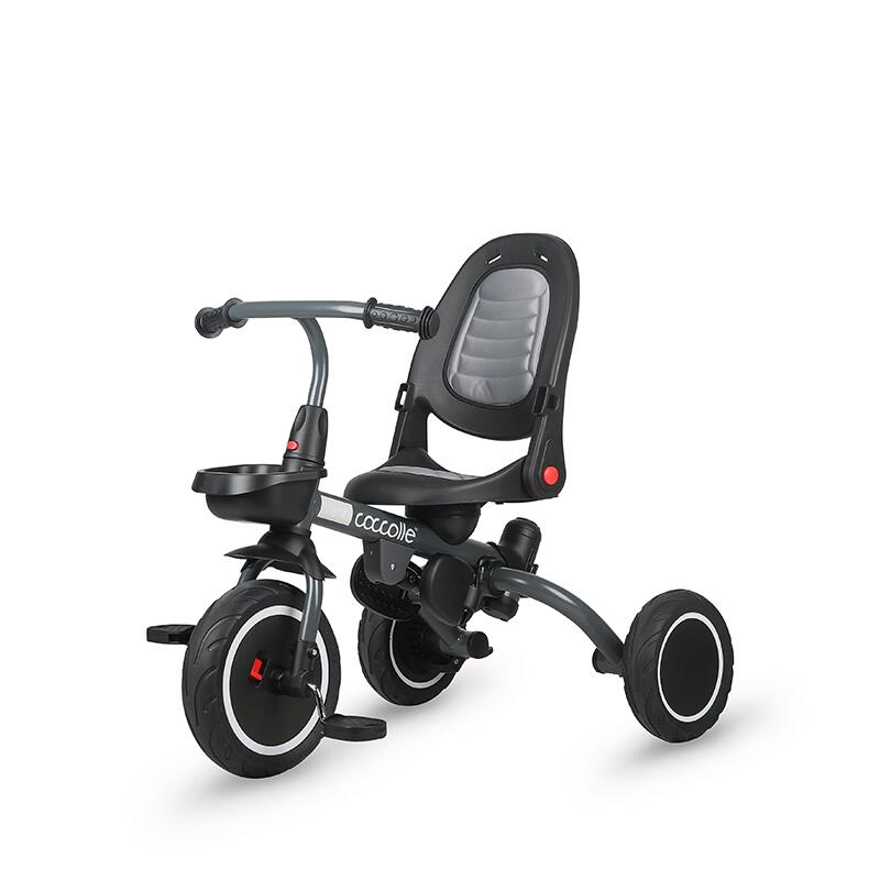 Pentru avantajul parintilor, tija auxiliara este telescopica astfel ca efortul la impingere este minimal. Cu ajutorul spatiilor de depozitare inteligente, fiecare jucarie a celui mic si device necesar adultilor isi gaseste locul pe acest produs. Tricicleta beneficiaza de toate masurile de siguranta putand fi utilizata in intervalul de varsta 1-5 ani (centura de siguranta, sezut si spatar matlasat, inel de siguranta). Pentru a economisi spatiu atat la depozitare, cat si la transport, cadrul tricicletei se pliaza.