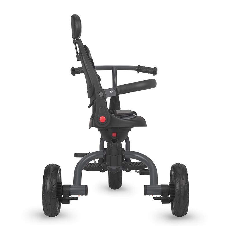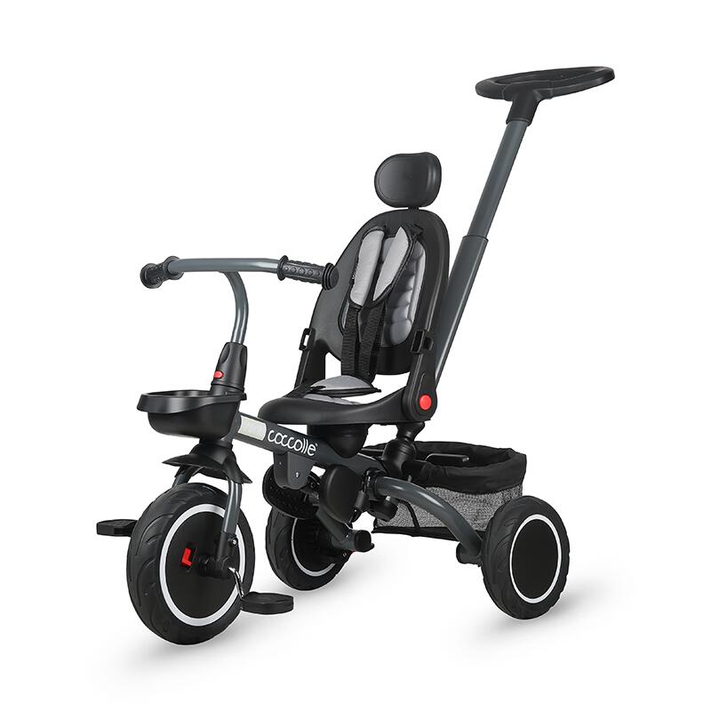 Pentru avantajul parintilor, tija auxiliara este telescopica astfel ca efortul la impingere este minimal. Cu ajutorul spatiilor de depozitare inteligente, fiecare jucarie a celui mic si device necesar adultilor isi gaseste locul pe acest produs. Tricicleta beneficiaza de toate masurile de siguranta putand fi utilizata in intervalul de varsta 1-5 ani (centura de siguranta, sezut si spatar matlasat, inel de siguranta). Pentru a economisi spatiu atat la depozitare, cat si la transport, cadrul tricicletei se pliaza.