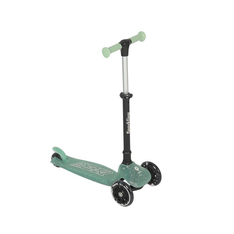 Trotinetă cu 3 roți QPlay Sparkling – roți cu lumini LED, platformă cu sclipici, pliere rapidă (de la 3 ani)
